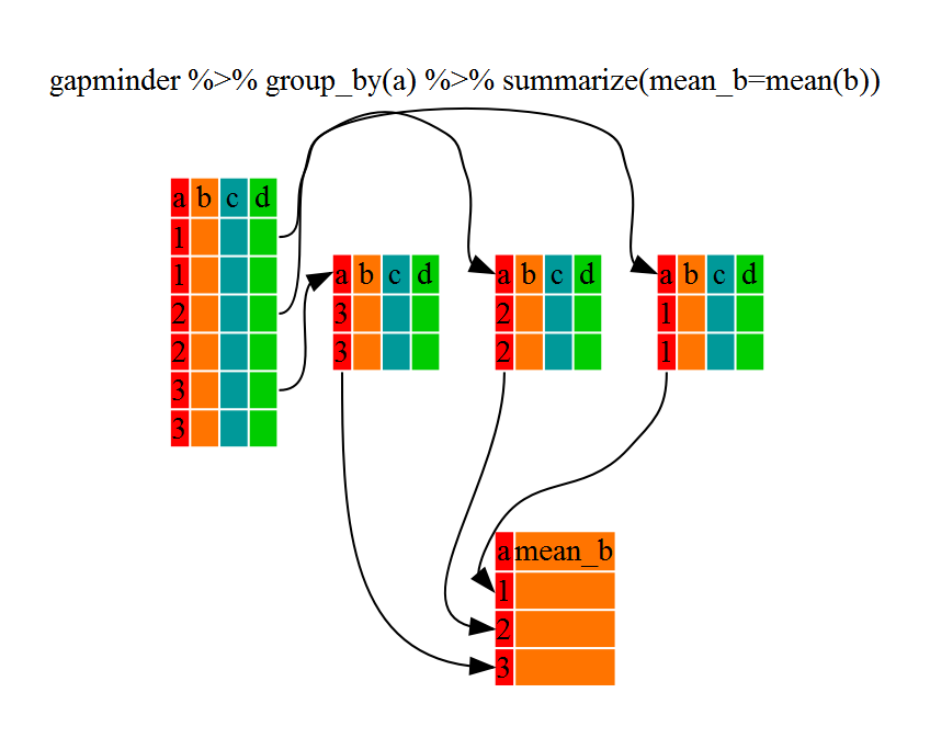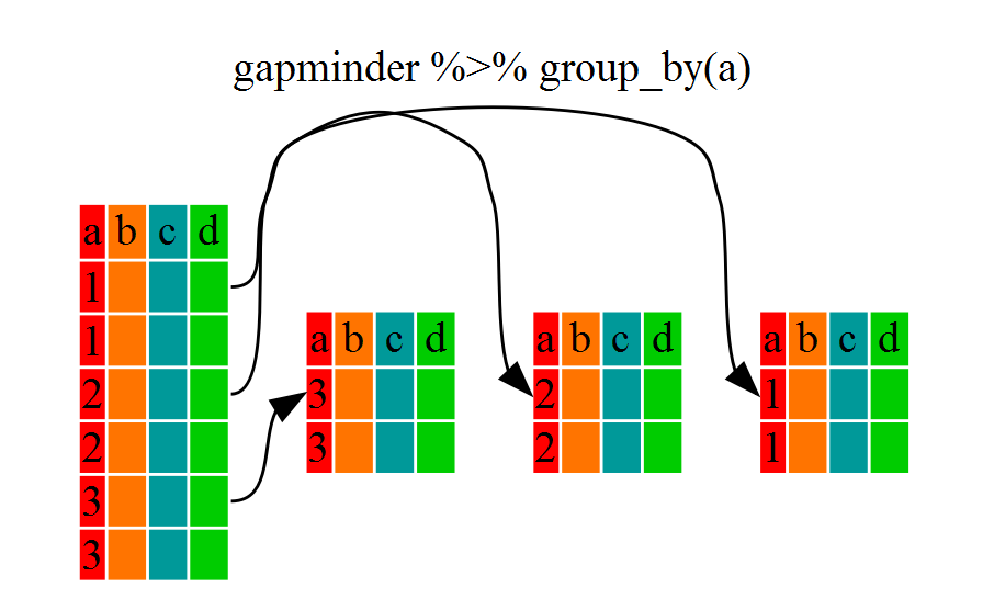 You will notice that the structure of the dataframe where we used group_by() (grouped_df) is not the same as the original gapminder (data.frame). A grouped_df can be thought of as a list where each item in the listis a data.frame which contains only the rows that correspond to the a particular value continent (at least in the example above).